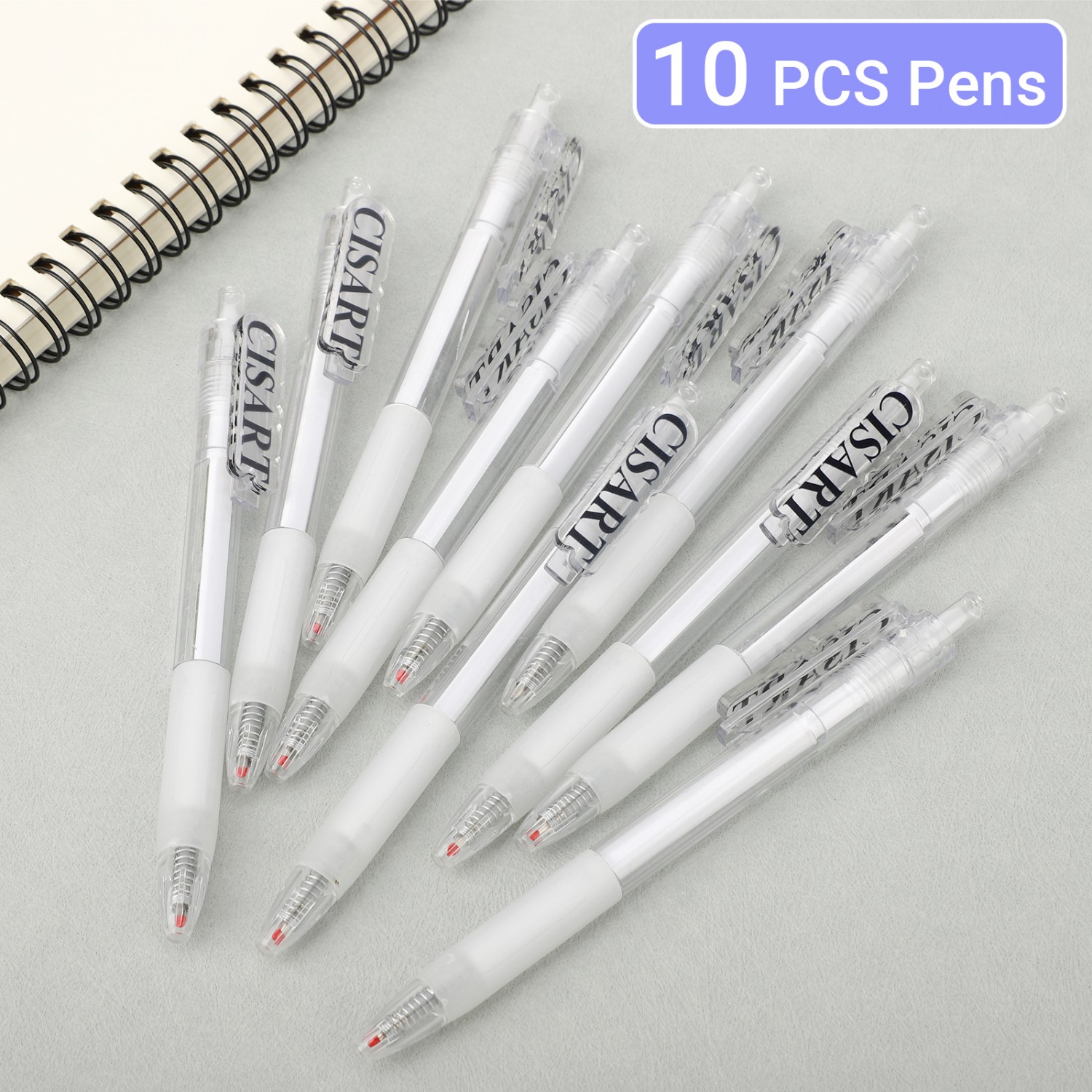 - 10 Pack Sleek Monochrome Pens Set: Features 10 click pens, offering a cohesive and professional look perfect for modern desks, minimalist kits, or as a stylish gift set.